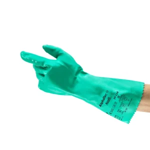 (OFERTA) GUANTES DE NITRILO ALPHATEC DE 14” COLOR VERDE, RESISTENTES A QUIMICOS, DESTREZA SUPERIOR Y ALTOS NIVELES DE AGARRE TANTO EN MEDIO SECO COMO HÚMEDO, CONTRIBUYEN A LA SEGURIDAD DEL USUARIO, CUMPLE CON EN 420:2003 + A1:2009 ,CATEGORIA III, MODELO 3 – Ref.39-124